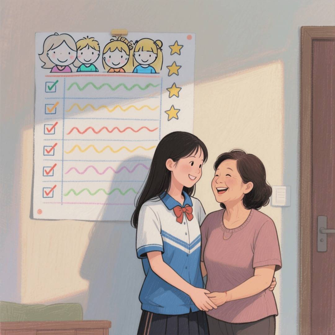 深夜整理女儿书桌时,刘女士发现那封情书被压在数学练习册下,旁边用铅笔写着:“他说要和我考同一所高中。”她想起自己日记本里那句“要和阿杰一起去北京上大学”,后来阿杰成了别人的丈夫,而她却在杭州遇见了现在的爱人。青春期的心动就像春天的雷阵雨,来得快去得也快,但那些脸红心跳的瞬间,会变成刻在生命里的温柔印记。 第二天清晨,女儿在牛奶杯下发现了一张便签:“喜欢一个人是很美好的事,但要记得,好的感情会让两个人一起变得更优秀。就像妈妈当年,因为想追上阿杰的成绩,数学考了全班第一。”书包里还多了本《青春期女孩手册》,扉页上贴着张泛黄的照片——十七岁的刘女士扎着马尾,站在教学楼前笑得灿烂,身后篮球场上,一个模糊的男生背影正在投篮。